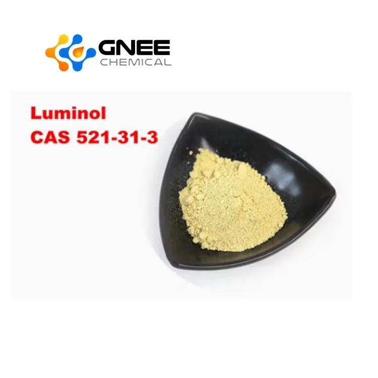 Le Luminol, également connu sous le nom de luminamine, photosensibilisant ou luminol, est un réactif chimique luminescent universel qui émet une lumière bleue visible lorsqu'il est mélangé avec des oxydants appropriés. C'est un cristal blanc à jaune clair soluble dans la plupart des solvants organiques polaires, mais insoluble dans l'eau. En médecine légale, le luminol est utilisé pour détecter des traces de sang sur les scènes de crime, tandis qu'en biologie, le luminol est utilisé comme substrat pour détecter la présence de cuivre, de fer et de cyanure dans les cellules.