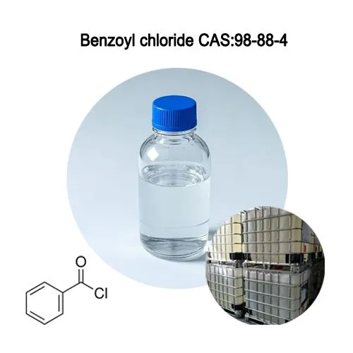 Chlorure de benzoyle (CAS 98-88-4)est un chlorure d'acyle hautement réactif couramment utilisé comme intermédiaire dans la production de colorants, de parfums, de produits pharmaceutiques et de polymères. Le chlorure de benzoyle est également utiliséAdditifs plastiques, Caoutchouc, et d'autres intermédiaires chimiques.